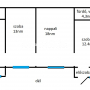A ház helyiségei: 2 előszoba, 3 szoba, konyha, kamra (padlás feljárattal), kádas fürdőszoba WC-vel